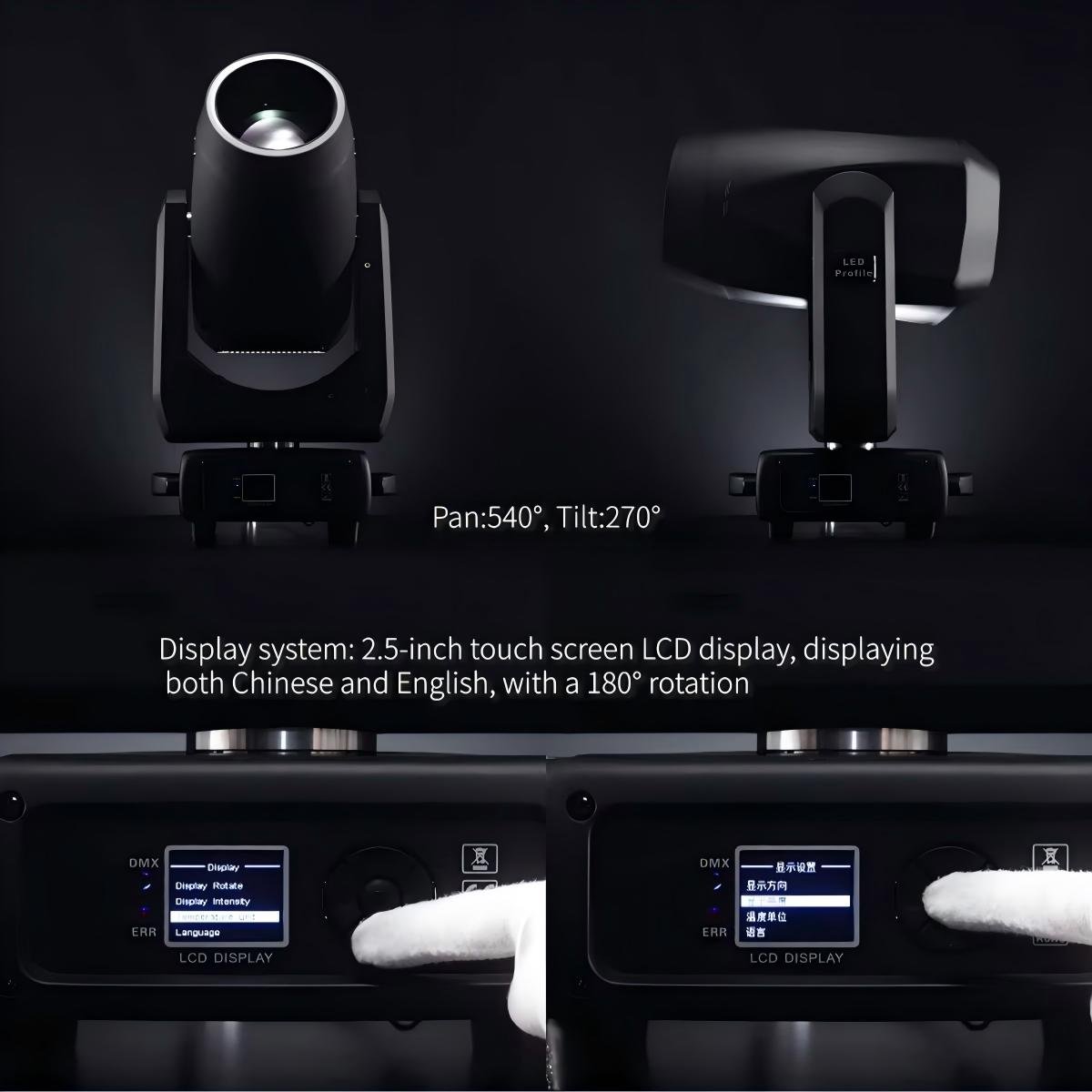 Professional 600W LED moving head light with Beam, Spot, Wash, and Profile functions in one fixture. Delivers 24,000 lumens at 7200K with optional high-CRI mode (Ra>90). Features CMY color mixing, linear CTO (2800–6000K), rotating prism, dynamic effect wheel, multiple gobos, and an 8-blade motorized framing system. Supports DMX512/RDM control with a 2.5″ touchscreen display, smooth dimming, fast strobe, and precise 16-bit pan/tilt. Ideal for concerts, theaters, clubs, and large events.
