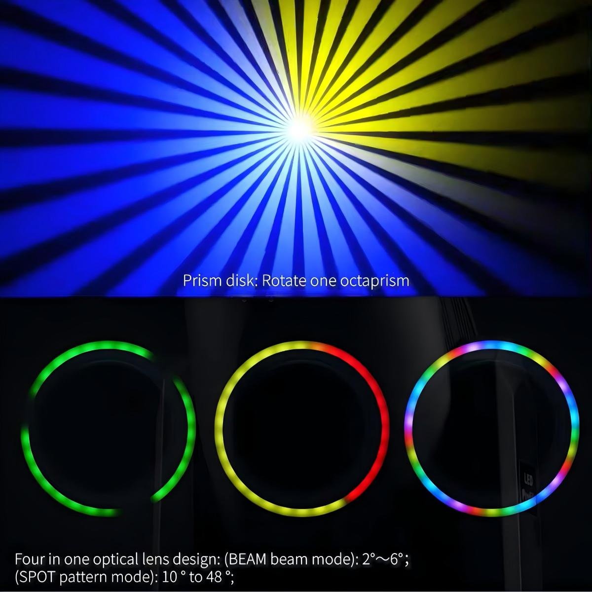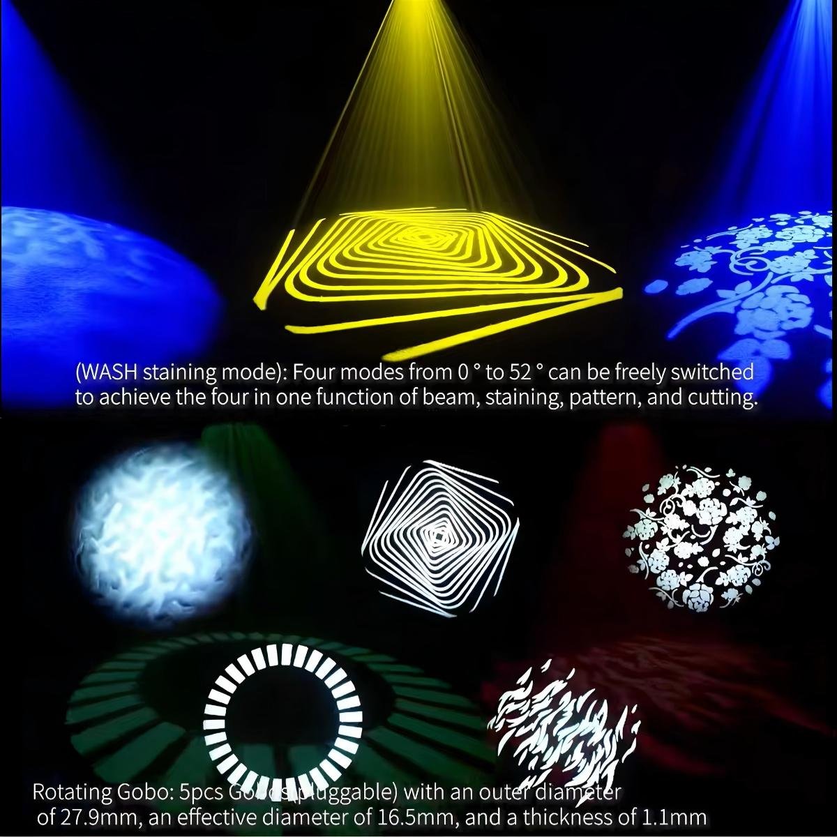 Rotating patterns: 7 rotating patterns + 1 white light, each glass pattern can be independently rotated forward or backward